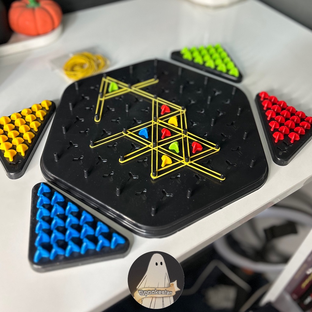 یک بورد بازی/ ۲۱ مهره رنگی / ۴ سینی توکن / ۵۰ عدد کش